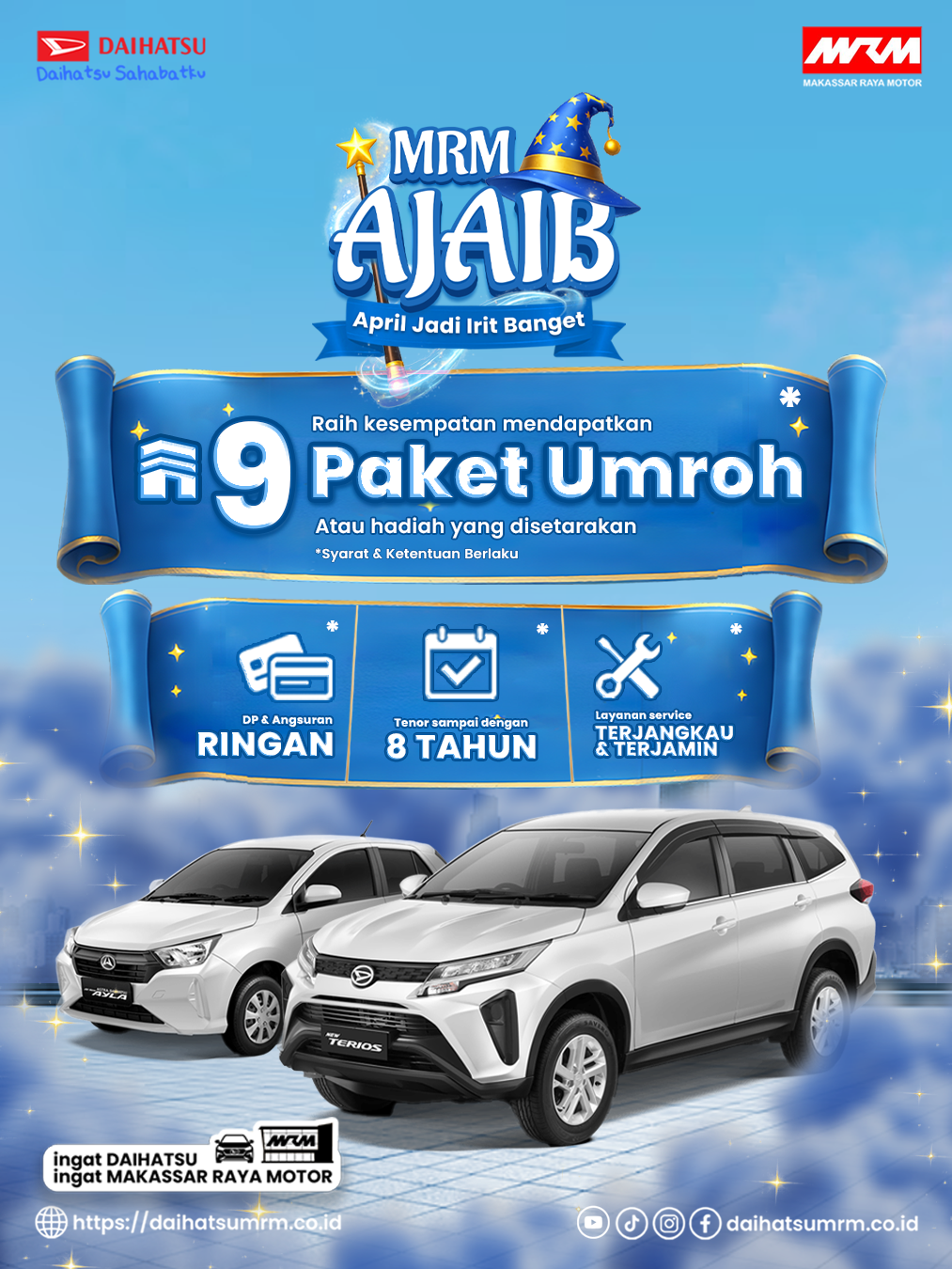 MRM AJAIB: Promo April dari Makassar Raya Motor Hadirkan DP Ringan, Tenor Panjang, dan Hadiah Umroh