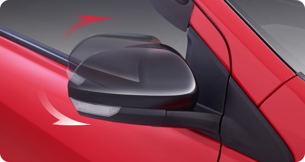 Melewati jalan sempit lebih nyaman dengan spion yang dapat dilipat & diatur otomatis dari dalam kabin Tipe 1.3 R